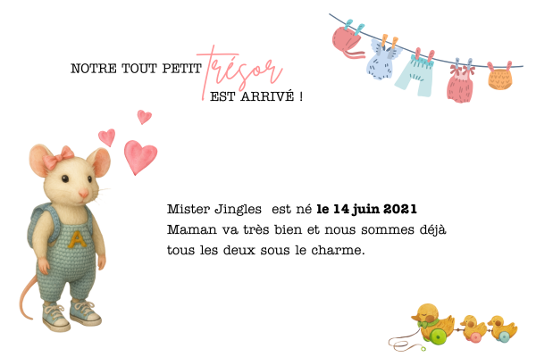 Mister Jingles n’était au départ qu’une idée que j’avais en tête. Créer une souris curieuse, tendre, un brin malicieuse. Et puis, un jour, il a pris vie entre mes mains.…