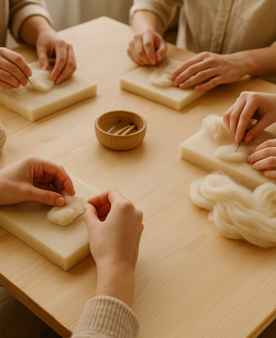 Partagez un moment créatif et plein de bonne humeur à plusieurs avec mon atelier de feutrage en groupe !